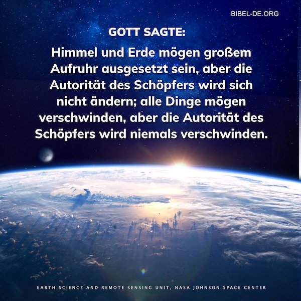 Gott sagte: „Himmel und Erde mögen großem Aufruhr ausgesetzt sein, aber die Autorität des Schöpfers wird sich nicht ändern; alle Dinge mögen verschwinden, aber die Autorität des Schöpfers wird niemals verschwinden.“