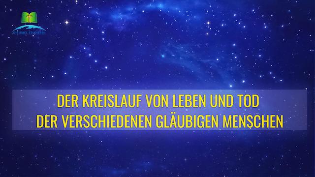 Wir besprachen gerade den Kreislauf von Leben und Tod der ersten Kategorie, der Ungläubigen. Lasst uns nun die zweite Kategorie besprechen, die verschiedenen gläubigen Menschen. „Der Kreislauf von Leben und Tod der verschiedenen gläubigen Menschen“ ist ebenfalls ein sehr wichtiges Thema, und es ist angebracht, dass ihr etwas Verständnis darüber habt. Lasst uns zunächst darüber reden, welche Glaubensrichtungen mit dem „Glauben“ der „gläubigen Menschen“ gemeint ist: Das bedeutet Judentum, Christentum, Katholizismus, Islam und Buddhismus, diese fünf führenden Religionen. Zusätzlich zu den Ungläubigen machen die Menschen, die an diese fünf Religionen glauben, einen großen Teil der Weltbevölkerung aus. Unter diesen fünf Religionen, gibt es nur wenige, die ihren Glauben zur Karriere gemacht haben, dennoch haben diese Religionen viele Gläubige. Ihre Gläubigen gehen zu einem anderen Ort, wenn sie sterben. „Anders“ als wer? Als die Ungläubigen, die Menschen ohne Glauben, über die wir soeben gesprochen haben. Nachdem sie gestorben sind, gehen die Gläubigen dieser fünf Religionen woanders hin, an einen anderen Ort, als jener der Ungläubigen. Es ist jedoch der Gleiche Ablauf. Die geistliche Welt wird auch über sie ein Urteil anhand von allem fällen, was sie getan haben, bevor sie starben, woraufhin dementsprechend mit ihnen verfahren wird. Aber warum werden diese Menschen woanders untergebracht, um mit ihnen zu verfahren? Dafür gibt es einen wichtigen Grund. Und was ist dieser Grund? Ich werde es euch unter Verwendung eines Beispiels erzählen. Doch bevor Ich dies tun werde, denkt ihr euch vielleicht: „Vielleicht liegt es daran, dass sie etwas Glauben an Gott haben! Sie sind nicht völlig ungläubig.“ Das ist nicht der Grund. Es gibt einen wichtigen Grund, warum sie woanders untergebracht werden.